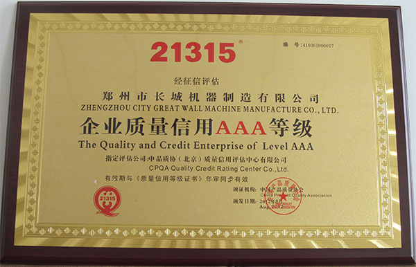 企業(yè)質(zhì)量3A等級獎(jiǎng)牌