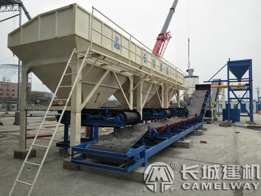 這套600水穩(wěn)站,配置有6個(gè)骨料斗、4種粉料倉(cāng)、破拱裝置、袋裝水泥提升機(jī)、水泥斗、結(jié)構(gòu)形式為“ L” 字形結(jié)構(gòu)。