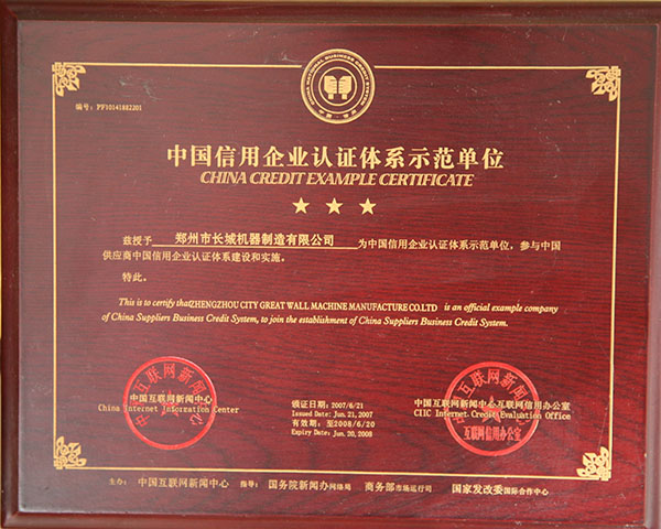 中國信用企業(yè)認(rèn)證體系示范單位