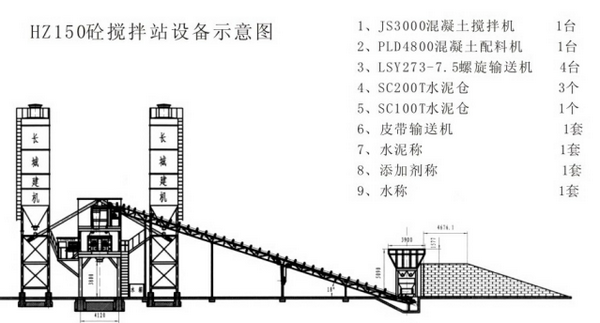 HZS150水泥混凝土攪拌站設(shè)備配置圖