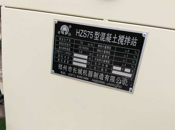 混凝土1.5方攪拌機(jī)主機(jī)銘牌